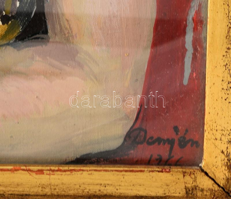 Demjén Attila (1926-1973): Fiatal hölgy arcképe, 1966. Olaj, vászon, jelezve jobbra lent. Kiállítva: Csók István Galéria, Budapest, 1966, egyéni kiállítás. Üvegezett fakeretben. 60x39 cm
