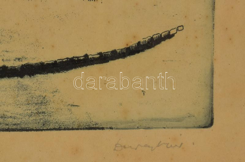 Leírás: Duray Tibor (1912-1988): Bécsikapu tér (Budai vár). Rézkarc, papír, jelzett, kissé foltos, üvegezett fakeretben, 29,5×39 cm