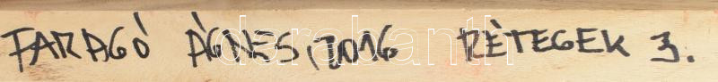 Leírás: Faragó Ágnes (1951-): Rétegek 3. Akril, vászon, jelzett a hátoldalán. 59,5x59,5 cm
