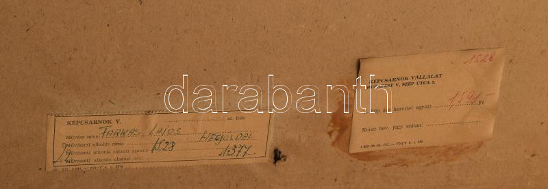 Farkas Lajos (1919-1998): Hegyoldal. Olaj, farost. Jelzett. Hátoldalán... https://www.darabanth.com/hu/514-Festmeny-grafika-plakat-ex-libris-arveres/516.0/Festmenyek-es-grafikak/Festmenyek-es-grafikak~8/Farkas-Lajos-1919-1998-Hegyoldal-Olaj-farost-Jelzett-Hatoldalan-Kepcsarnok-Vallalat-cimk~II3421119