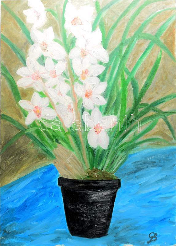 Leírás: Göröcz Beáta (-): Virágok, olaj, vászon, kartonon, jelzett. Jobb alsó sarkában kissé sérült. 70x50 cm