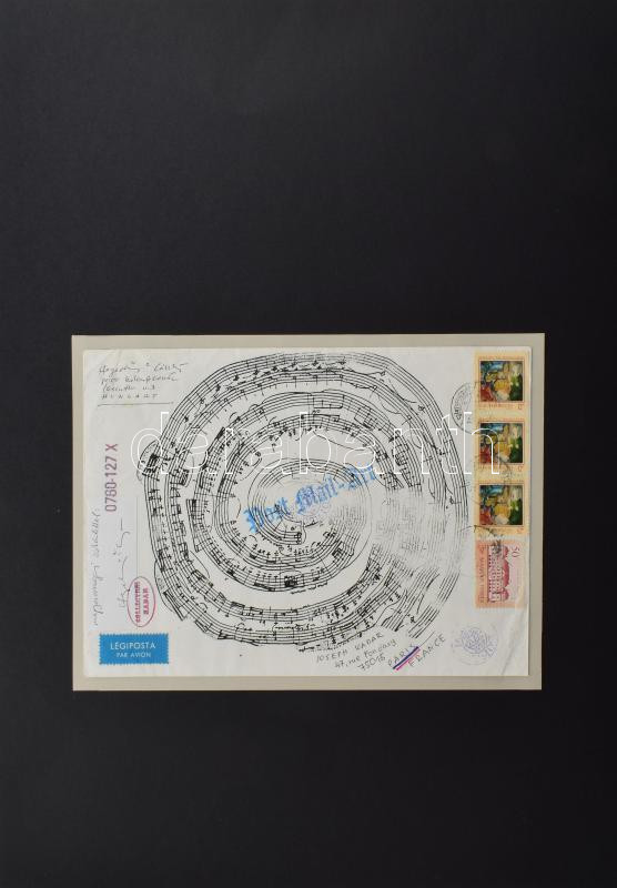 Hegedűs 2 László (1950-): Mail art mű. Vegyes technika, nyomat, kollázs, papír, jelzett. Kartonra kasírozva. Joseph Kadarnak (1936-2019) küldve, gyűjteményi pecsétjével (Collection Kadar). 16x23 cm