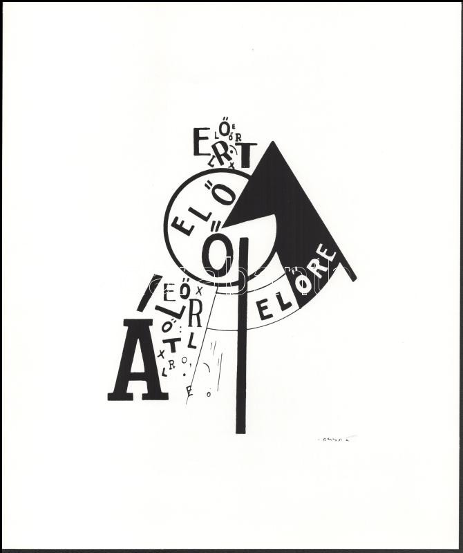 Kassák Lajos (1887-1967): Előre (cím nélkül). Szitanyomat, papír. Jelzett a nyomaton. Pesti Műhely kiadása, az 1981-ben megjelent Kassák 6 Typographia c. mappából. Lapméret: 35x28,5 cm
