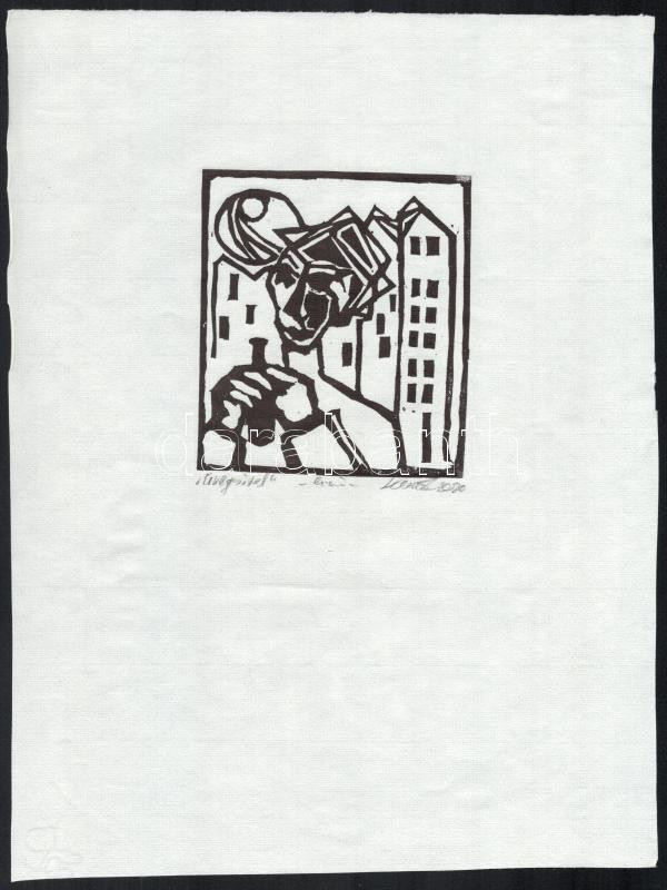 Leírás: Klement Zoltán (1967-): Üvegcsével. Linómetszet papír, jelzett. 10x9 cm