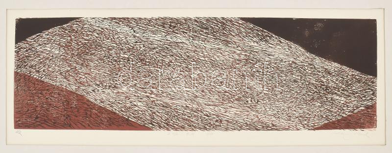 Leírás: Klossy Irén (1943-): Ősz. Linómetszet, papír. Jelzett. Művészpéldány X 1/2 E.A VII/VIII számozással Paszpartuban. 15,5x51 cm