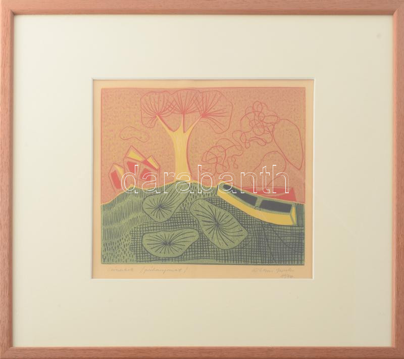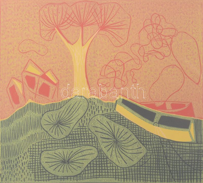 Kőhegyi Gyula (1933-): Csónakok. Színes linómetszet. papír. Jelzett, p... https://www.darabanth.com/hu/514-Festmeny-grafika-plakat-ex-libris-arveres/516.0/Festmenyek-es-grafikak/Festmenyek-es-grafikak~8/Kohegyi-Gyula-1933-Csonakok-Szines-linometszet-papir-Jelzett-probanyomat-uvegezett-k~II3470348