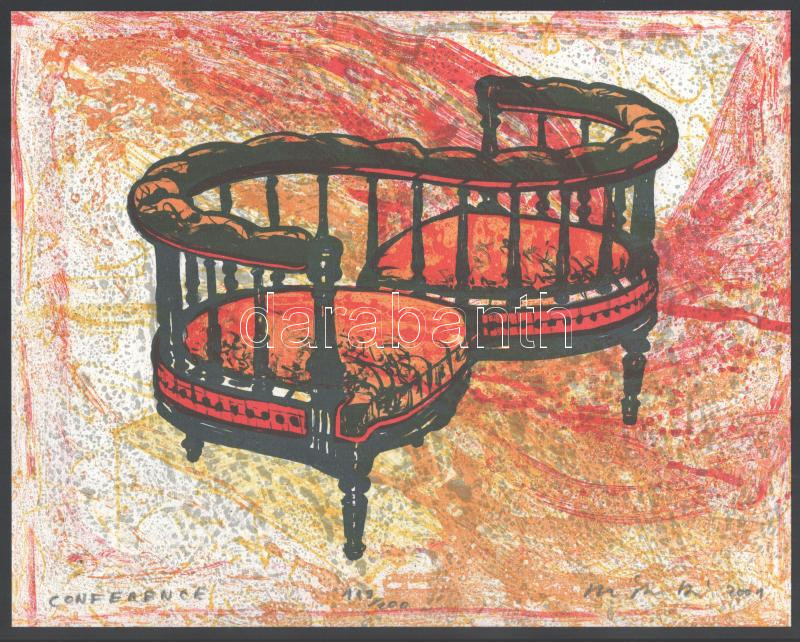 Kovács Péter Balázs (1955-): Conference. Lito-ofszet, papír, jelzett, számozott (119/200), 23x29 cm. A 2001-ben megjelent In passing/Menet közben c. mappából.