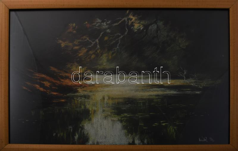 Leírás: Máté Sándor (1954-): Erdei patak. Pasztell, papír. Jelzett. Üvegezett fakeretben, 33x50 cm