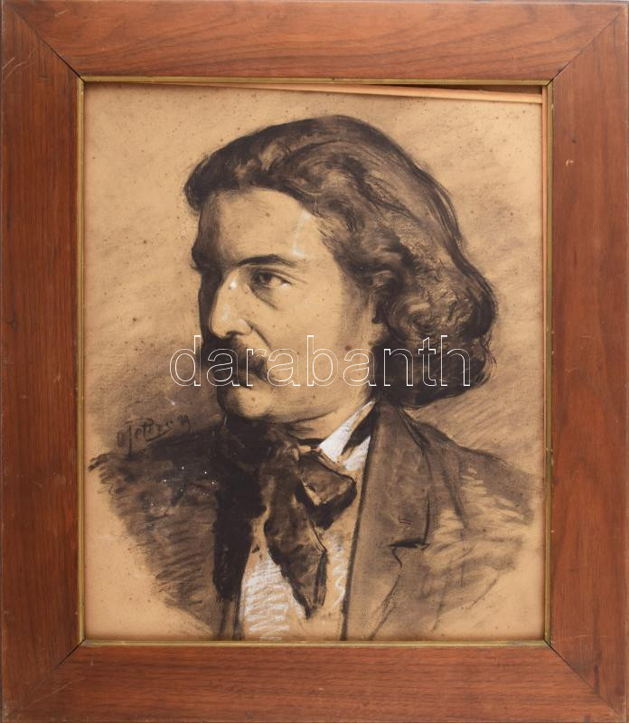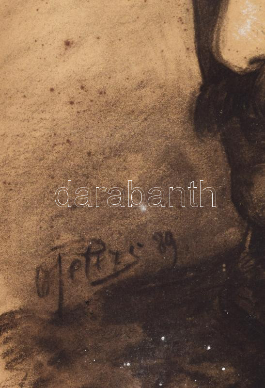 Peters, Ottó (1858-1908): Portré (önarckép?), 1889. Vegyes technika, papír, jelezve balra középen. 46,5x39 cm Fakeretben. Hátoldalán régi bécsi képkeretező címkéjével.