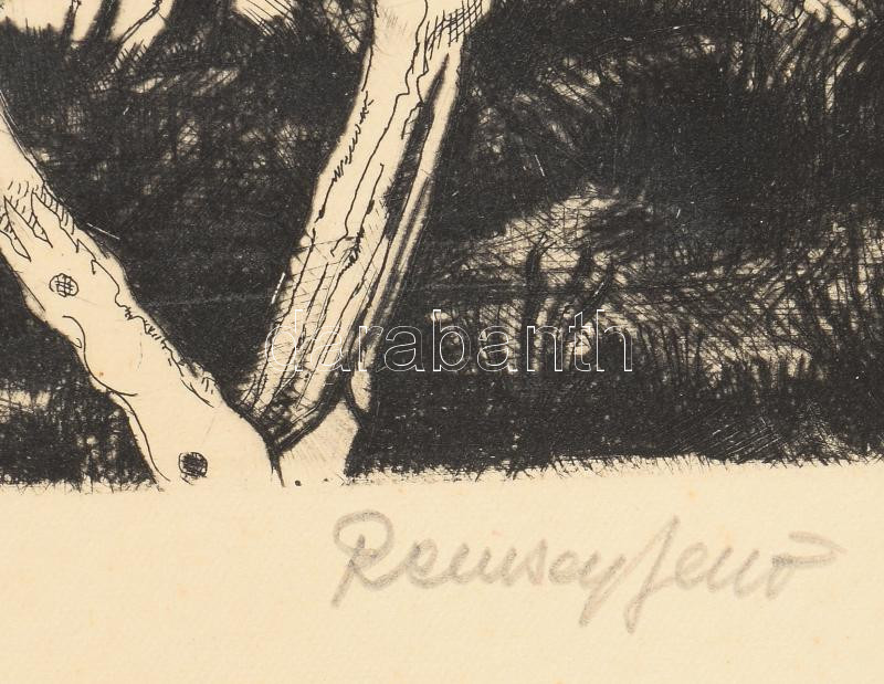 Leírás: Remsey Jenő (1885-1970): Alkony. Rézkarc, papír, jelzett, kartonra kasírozva, apró lapszéli elszíneződésekkel, kissé vetemedett, 19,5x29 cm