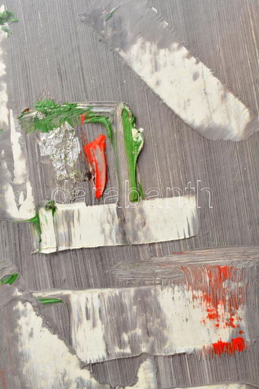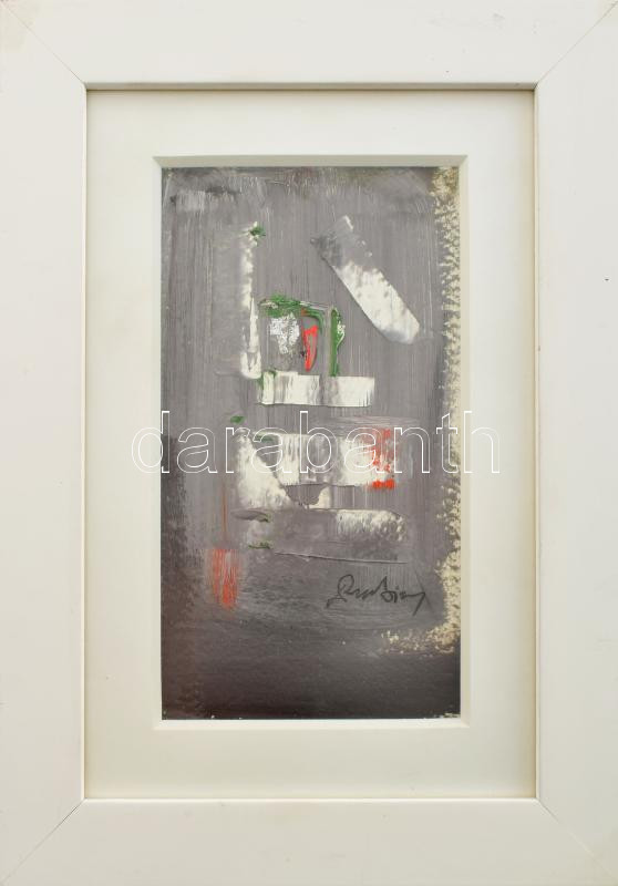 Leírás: Rubint Ávrahám Péter (1958-): Piros-fehér-zöld (cím nélkül), 2002. Olaj, papír, jelezve jobbra lent, üvegezett keretben. 18,5×10 cm