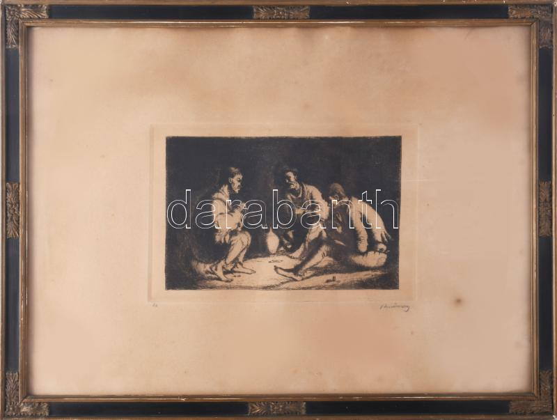 Leírás: Rudnay Gyula (1878-1957): Kártyázók. Rézkarc, papír, jelzett. Korabeli, üvegezett, kissé sérült fakeretben, 16×23,5 cm, lap széle kissé foltos.