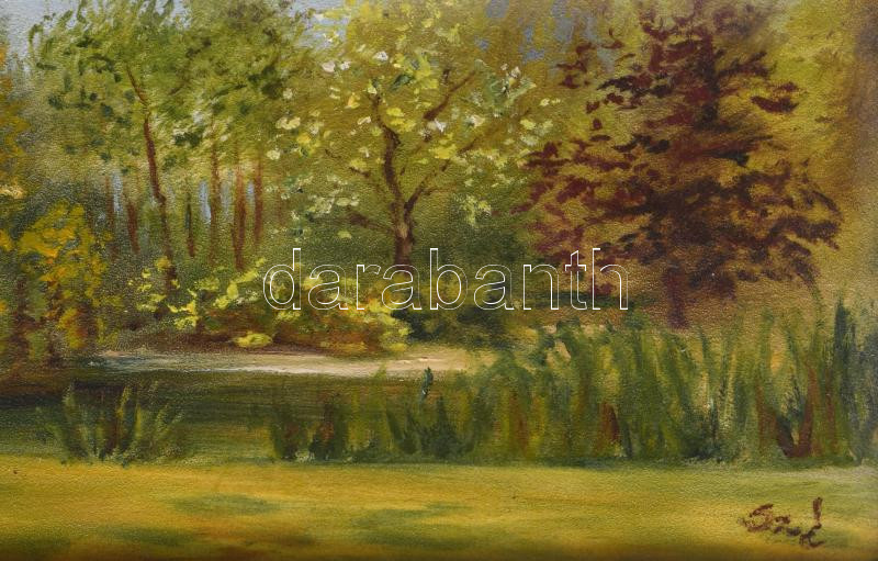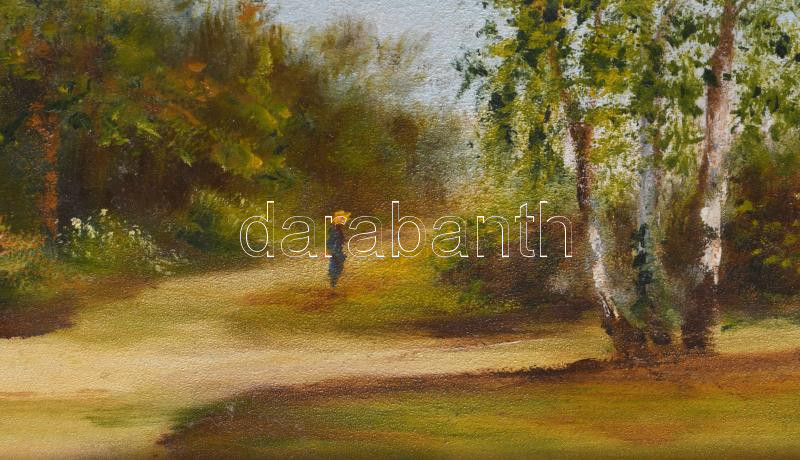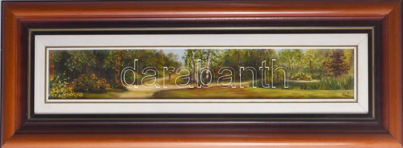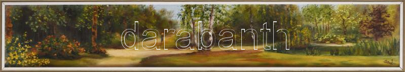 Leírás: Szabó Éva: Arborétum. Olaj, farost, jelzett, keretben 11x60 cm