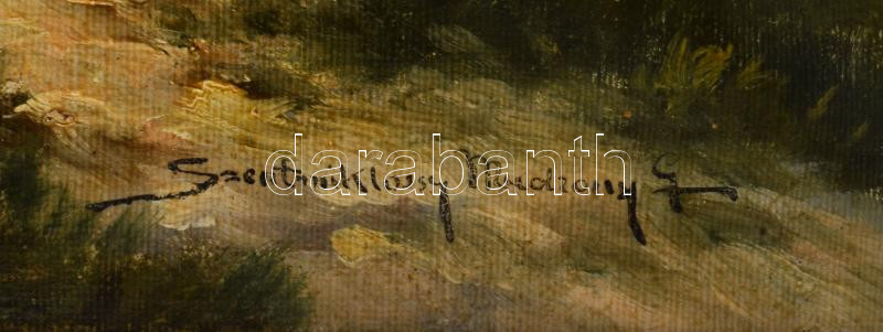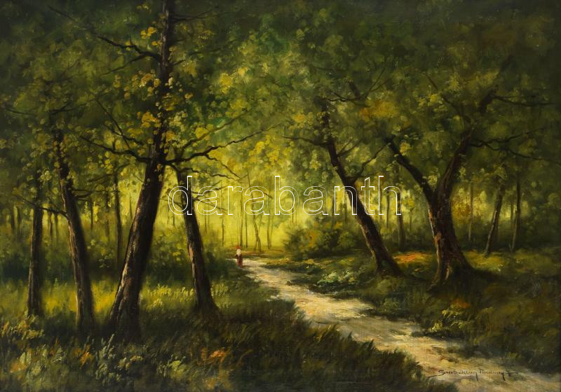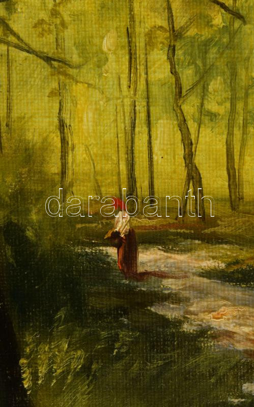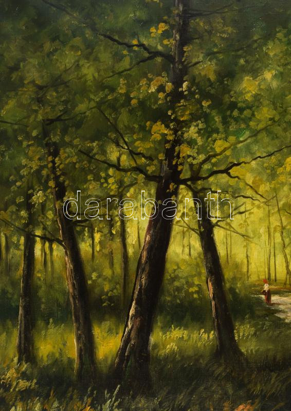 Leírás: Szentmiklóssy Mudrony Sándor (-), működött a XX. első felében: Hölgy az erdőben. Olaj, vászon. Jelzett. Dekoratív, fakeretben. 50x70 cm