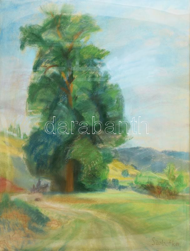 Leírás: Szobotka Imre (1890-1961): Magányos tölgy Pasztell, papír 63 × 48 cm Jelezve jobbra lent: Szobotka. Üvegezett keretben