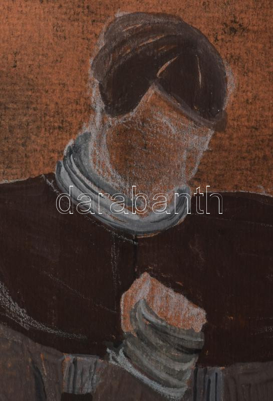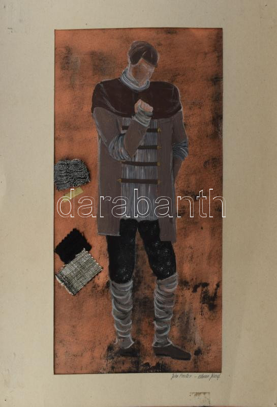Szűcs Edit (1968): Jelmezterv (John Proctor, Arthur Miller: A salemi boszorkányok c. darabhoz). Vegyes technika, kollázs, papír. Jelzés nélkül. Laza paszpartuban. 42x21 cm