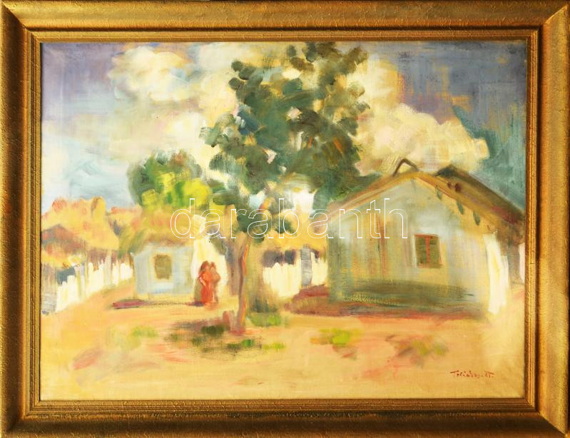 Tóbiás György (1902-1968): Napfényes utca, 1941. Olaj, vászon. Jelezve jobbra lent. Dekoratív fakeretben. 75x100 cm. KIZÁRÓLAG SZEMÉLYES ÁTVÉTEL, NEM POSTÁZZUK / ONLY PERSONAL COLLECTION IN OUR OFFICE!