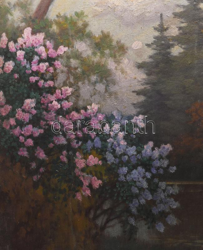 Leírás: Tordai Székely Mihály (1890-1940): Virágos park. Olaj, vászon, jelzett. Dekoratív fakeretben, 60x80 cm