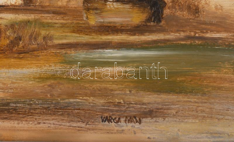 Leírás: Varga Iván (1960-): Elhagyatva. Olaj, farost, jelzett. Fakeretben, 35x60 cm