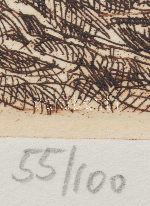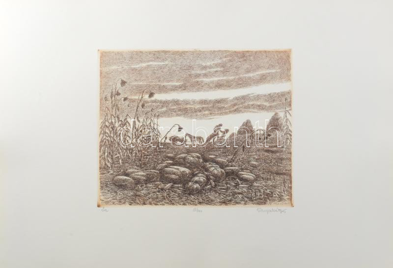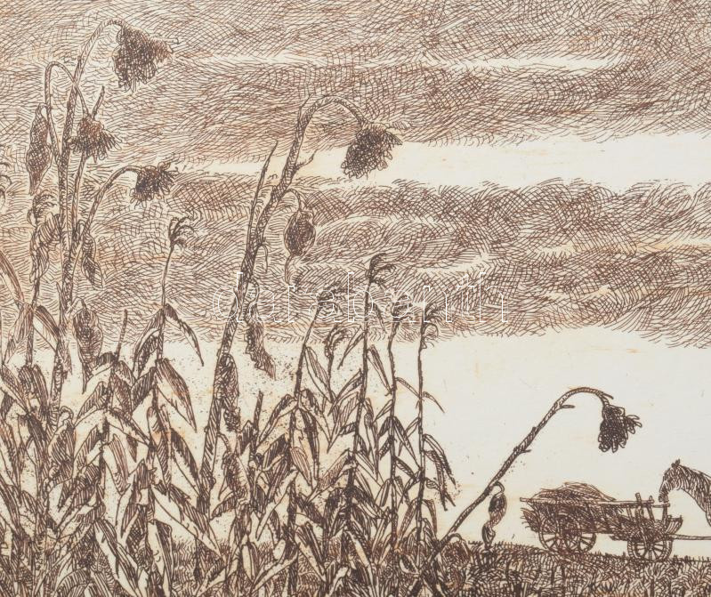 Leírás: Varga Mátyás (1910-2002): Ősz, 1979. Rézkarc, papír, jelzett, számozott (55/100), 24,5×29,5 cm