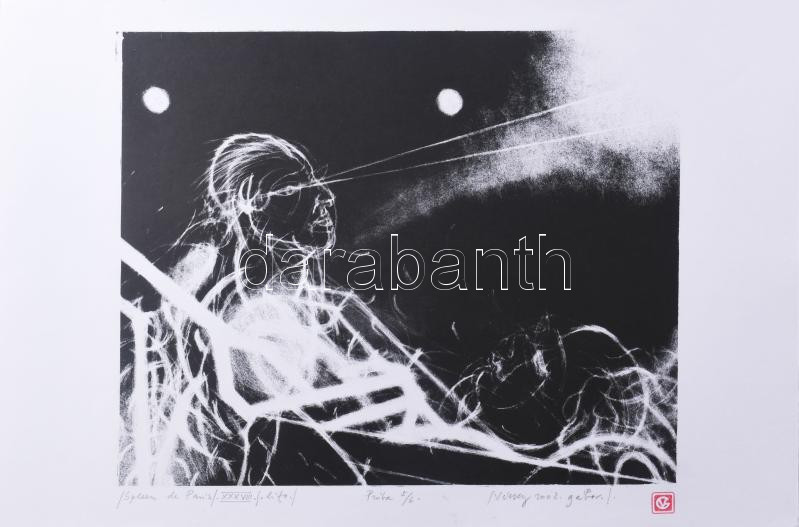 Leírás: Véssey Gábor (1948-): Spleen de Paris XXXIV, 2002. Litográfia, papír, jelzett, próbanyomat 5/6 számozással, 30×35 cm