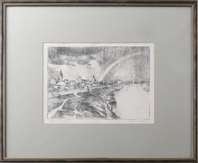 Leírás: Zádor István (1882-1963): Szolnok, Tiszapart. Színezett rézkarc, papír, jelzett. 20×26,5 cm. Üvegezett fakeretben.