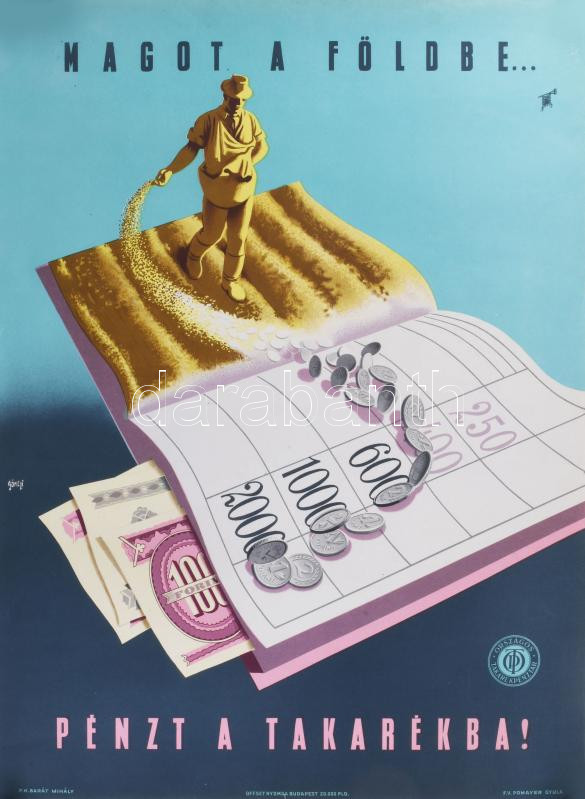 Gönczi-Gebhardt Tibor (1902-1994): Magot a földbe... pénzt a takarékba... https://www.darabanth.com/hu/514-Festmeny-grafika-plakat-ex-libris-arveres/516.0/Festmenyek-es-grafikak/Plakat~7/Gonczi-Gebhardt-Tibor-1902-1994-Magot-a-foldbe-penzt-a-takarekba-plakat-lapszeli-szakad~II3480432