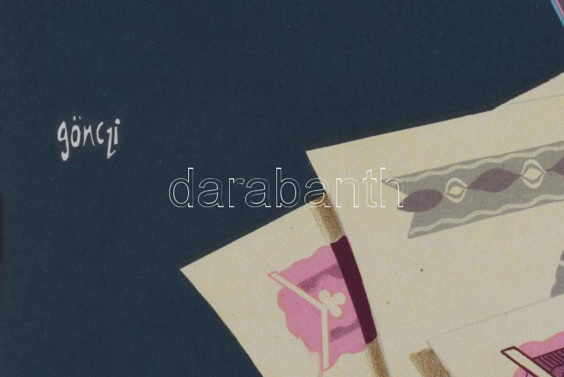 Leírás: Gönczi-Gebhardt Tibor (1902-1994): Magot a földbe... pénzt a takarékba plakát, lapszéli szakadással, 49,5×68 cm