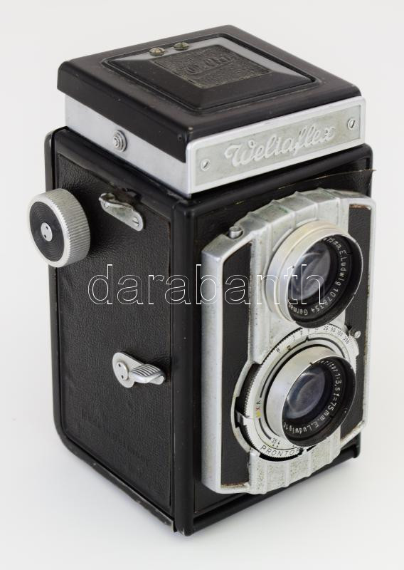 1955 Welta: Weltaflex kamera Meyer F. Ludwig Meritar 1:3,5/75 objektívvel jó állapotban, bőr tokkal