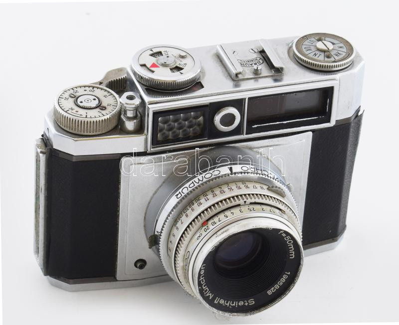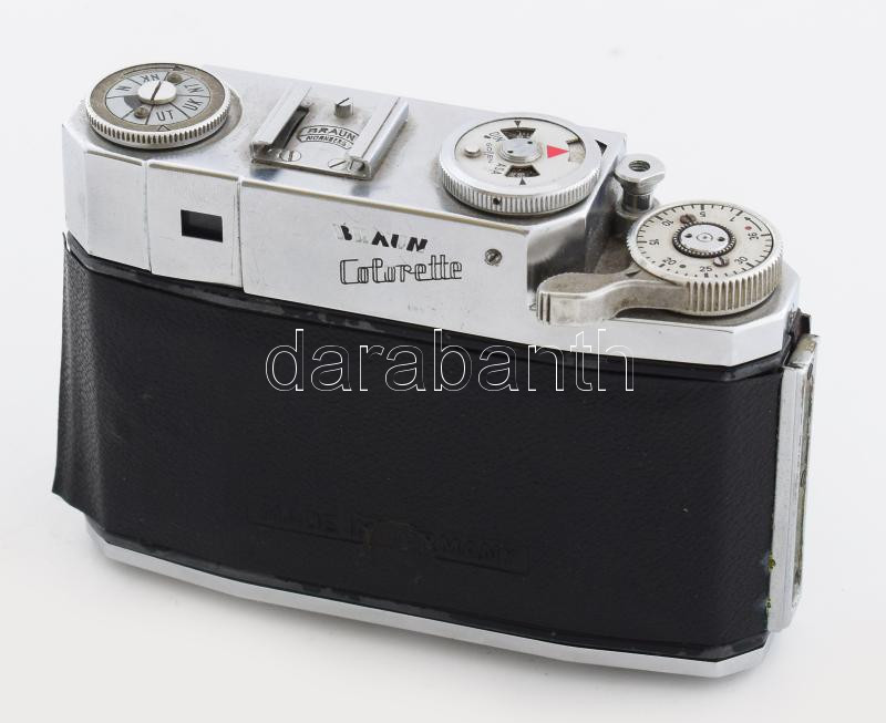 cca 1558/1959 Braun Super Colorette fényképezőgép, kissé ütődött Steinhell München Cassarit 1.28 objektívvel, kis kopással, felületi foszlással.
