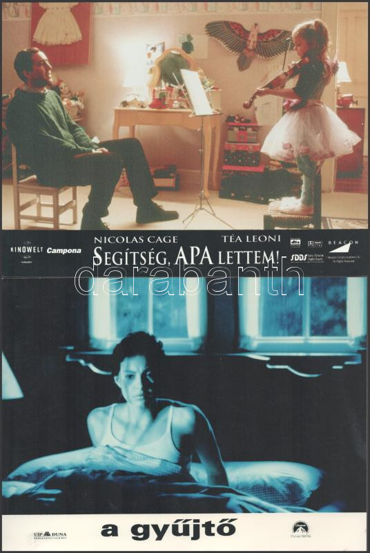 Leírás: USA filmek promóciós filmfotói, rajta Nicolas Cage, Sigourney Weawer, Christian Slater, James Coburn, 3 db színes és 1 db fekete-fehér fotó, 18×24 cm