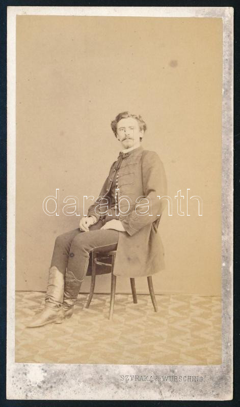 Leírás: cca 1865 Férfiportré, keményhátú fotó Sztraka és Würsching besztercebányai műterméből, utánrendelési számmal, 10,5×6,5 cm
