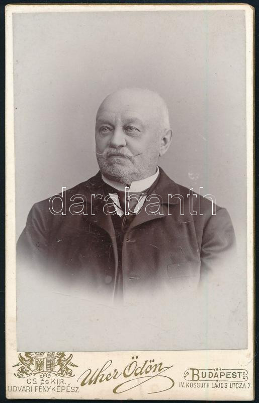 Leírás: cca 1900 Úr portréja, Dudás József honvéd tábornok (??), vizitkártya Uher Ödön budapesti műterméből, 10,5x6,5 cm