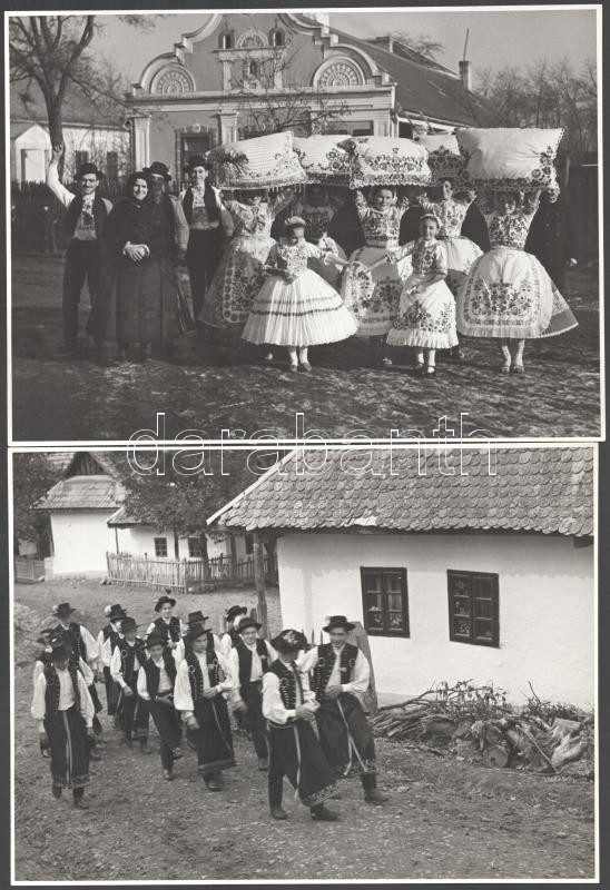 Leírás: cca 1930-1940 Kalocsa, Szakmár - matyók, Czvek Gyula 2 db pecséttel jelzett, feliratozott fotója, 17×23 cm