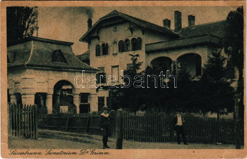 Leírás: 1921 Savanyúkút, Bad Sauerbrunn; Sanatorium Dr Grimm. Fritz Hönigsberg / szanatórium / sanatorium (EB)