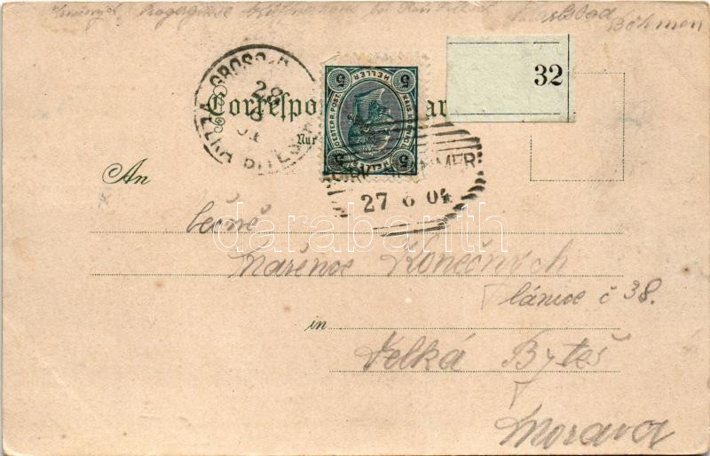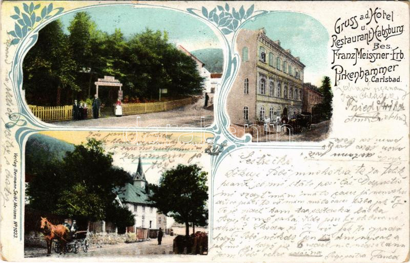 1904 Brezová, Pirkenhammer bei Karlsbad (Karlovy Vary); Hotel und Restaurant Habsburg Bes. Franz Meissner Erb. Hermann Seibt / hotel, restaurant. Art Nouveau, floral (fa)