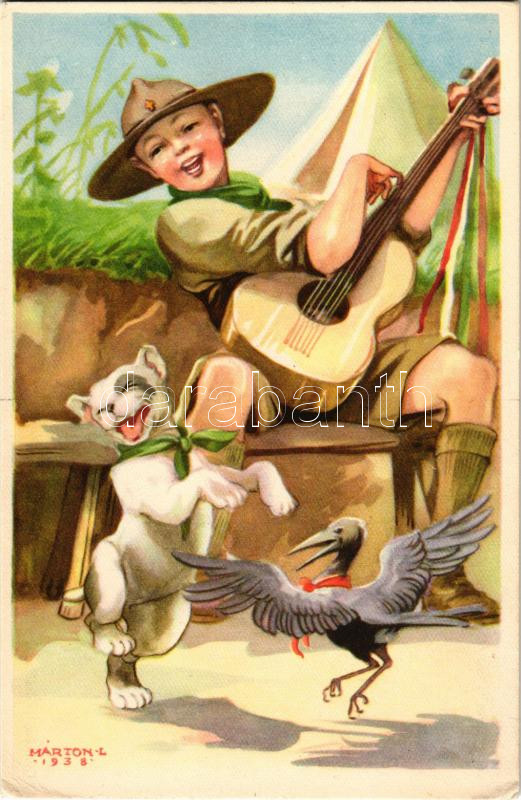Leírás: A cserkész vidám és meggondolt. Cserkész levelezőlapok kiadóhivatala / Hungarian boy scout art postcard s: Márton L. (EK)