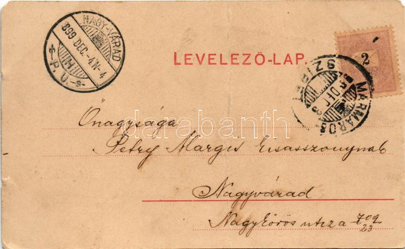 1899 (Vorläufer) Máramarossziget, Sighetu Marmatiei; Római katolikus templom és gimnázium, állami felsőbb leányiskola, Mária Valéria nőnevelő intézet, református líceum. Kaufmann Ábrahám kiadása / Roman Catholic church, high school, girls' school, Calvinist school. Art Nouveau, floral (EM)