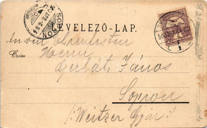 1900 Temesvár, Timisoara; Állami reál iskola, Losonczy tér, Jenő herceg tér, Városi tűzoltótorony. Kossak József udvari fényképész kiadása / school, square, fire tower. Art Nouveau, floral (EK)