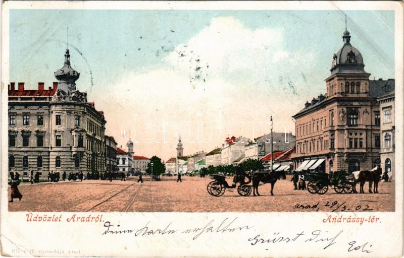 1902 Arad, Andrássy tér, lovaskocsik. Bloch H. kiadása / square, horse... https://www.darabanth.com/hu/514-Filatelia-kepeslap-numizmatika-mutargy-konyv-papirregiseg-ekszer-aukcio/515.0/Kepeslapok/Erdely~1105/1902-Arad-Andrassy-ter-lovaskocsik-Bloch-H-kiadasa-square-horse-drawn-carriages-EK~II3476977