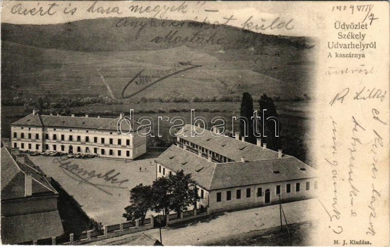 1904 Székelyudvarhely, Odorheiu Secuiesc; Kaszárnya, laktanya. M. J. k... https://www.darabanth.com/hu/514-Filatelia-kepeslap-numizmatika-mutargy-konyv-papirregiseg-ekszer-aukcio/515.0/Kepeslapok/Erdely~1105/1904-Szekelyudvarhely-Odorheiu-Secuiesc-Kaszarnya-laktanya-M-J-kiadasa-military-barracks-~II3474916