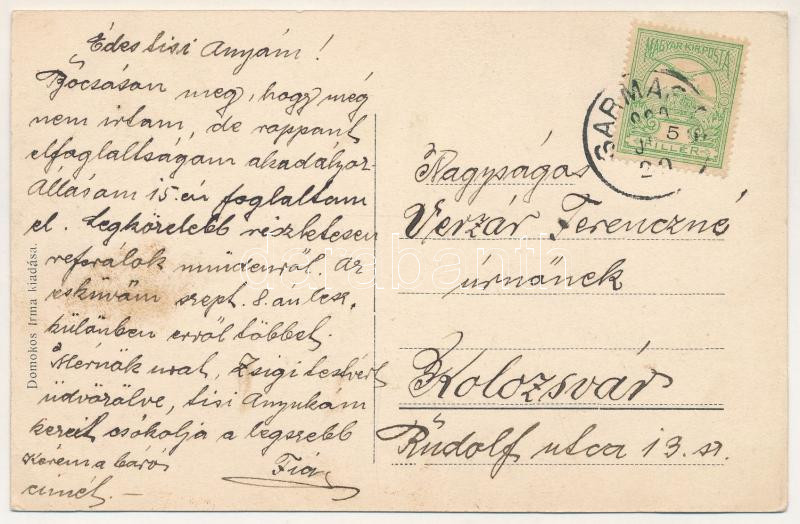 1909 Sarmaság, Sarmasag; vasútállomás, posta, csendőrlaktanya. Domokos... https://www.darabanth.com/hu/514-Filatelia-kepeslap-numizmatika-mutargy-konyv-papirregiseg-ekszer-aukcio/515.0/Kepeslapok/Erdely~1105/1909-Sarmasag-Sarmasag-vasutallomas-posta-csendorlaktanya-Domokos-Irma-kiadasa-railway-~II3463814