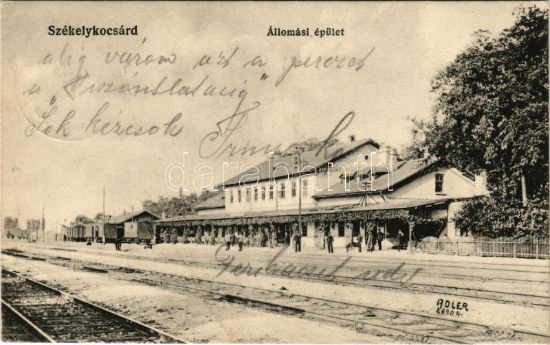 1912 Székelykocsárd, Kocsárd, Lunca Muresului; vasútállomás, vonat. Ad... https://www.darabanth.com/hu/514-Filatelia-kepeslap-numizmatika-mutargy-konyv-papirregiseg-ekszer-aukcio/515.0/Kepeslapok/Erdely~1105/1912-Szekelykocsard-Kocsard-Lunca-Muresului-vasutallomas-vonat-Adler-Arthur-fenyirdaja-~II3463882