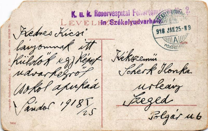 Leírás: 1918 Székelyudvarhely, Odorheiu Secuiesc; Gyalogsági laktanya, katonák. Dragomán kiadása / Military infantry baracks, soldiers + "K.u.k. Reservespital Fehértemplom Nr. 2. in Székelyudvarhely" (EM)