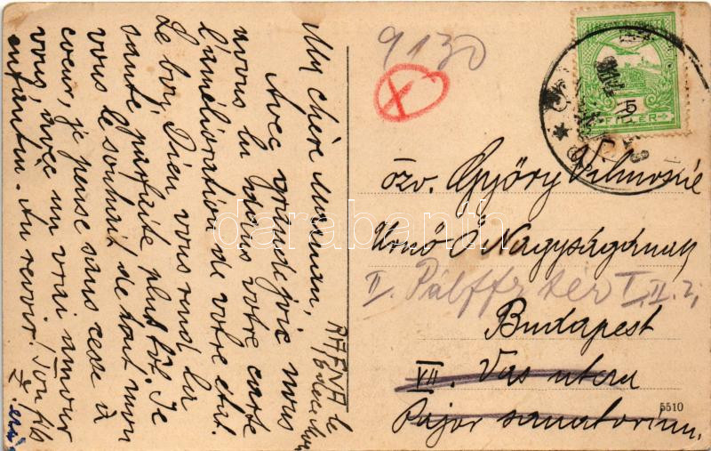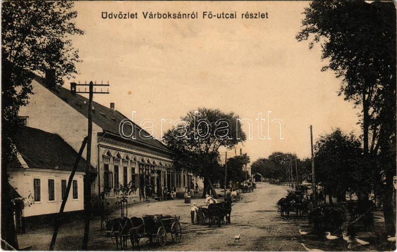 Boksánbánya, Várboksán, Románbogsán, Németbogsán, Deutsch-Bogsan, Bocsa Montana; Fő utca, piac, üzlet. A levél címzettje Győry Vilmosné Székács Etelka, az orosházi evangélikus lelkész, Győry Vilmos özvegye. / main square, market, shop (EK)