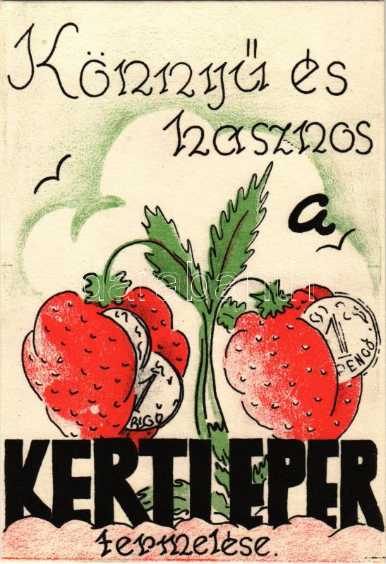 Marosvásárhely, Targu Mures; Könnyű és hasznos a kerti eper termelése. Ezzel a levelezőlappal Winter Katalin marosvásárhelyi kaptáros diák díjat nyert a Horthy István Diákkaptár Szövetség levelezőlap pályázatán / Hungarian Youth Association propaganda art postcard s: Winter Katalin (EK)