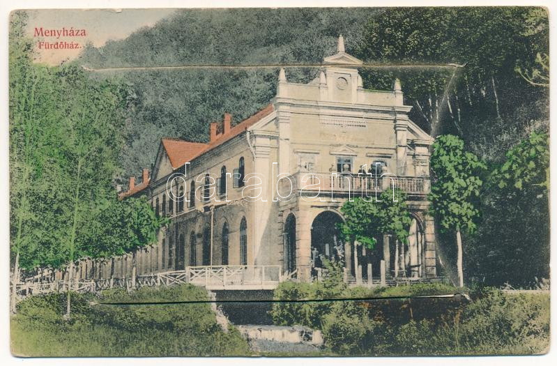 Leírás: Menyháza, Moneasa; fürdőház. Leporellolap 10 képpel, belül vasútállomás. Fái Károly kiadása / spa. leporellocard with railway station