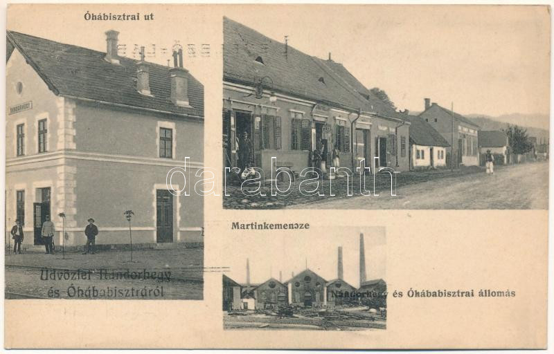 Leírás: Nándorhegy - Óhábabisztra, Bisztere, Ohaba bistra, Otelu Rosu; vasútállomás, Óhábabisztrai út, Ignaz Pollak üzlete, Martin kemence acélgyár / railway station, street, shop, steel factory (EK)