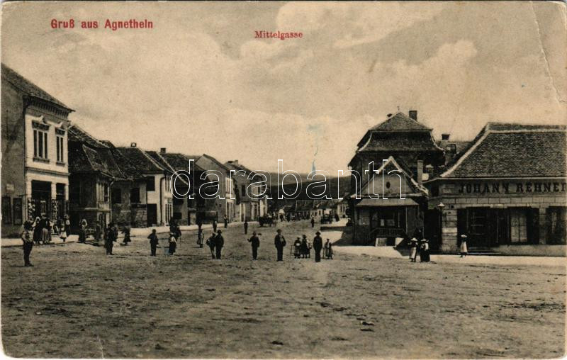 Leírás: Szentágota, Agnetheln, Agnita; Mittelgasse / Piac tér, Johann Rehner üzlete. H. C. Lang / market square, shop (EB)