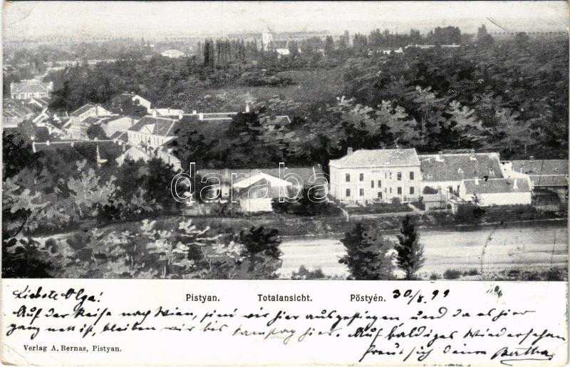 Leírás: 1899 Pöstyén, Piestany; látkép. A. Bernas kiadása / Totalansicht / general view (EB)